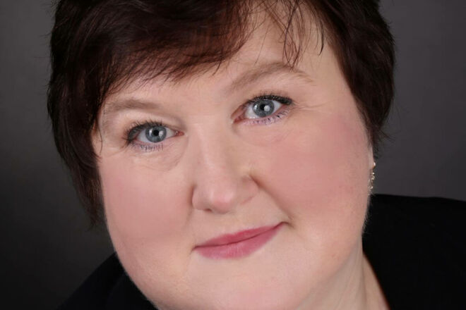 Gut besucht war die erste Vernissage nach Corona, zu der das Weiterbildungsinstitut WbI Essen in die Geschäftsstelle am Kennedyplatz 6 eingeladen hatte. Präsentiert wird die Essener Künstlerin Helga Budde-Engelke (2. von links) mit der Ausstellung „Querschnitt | Malerei 2015 – 2023“.