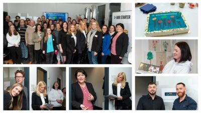 Nach dem Anschneiden der Jubiläumstorte ging es beim kleinen Imbiss und Getränken an den Austausch untereinander und ans Netzwerken.