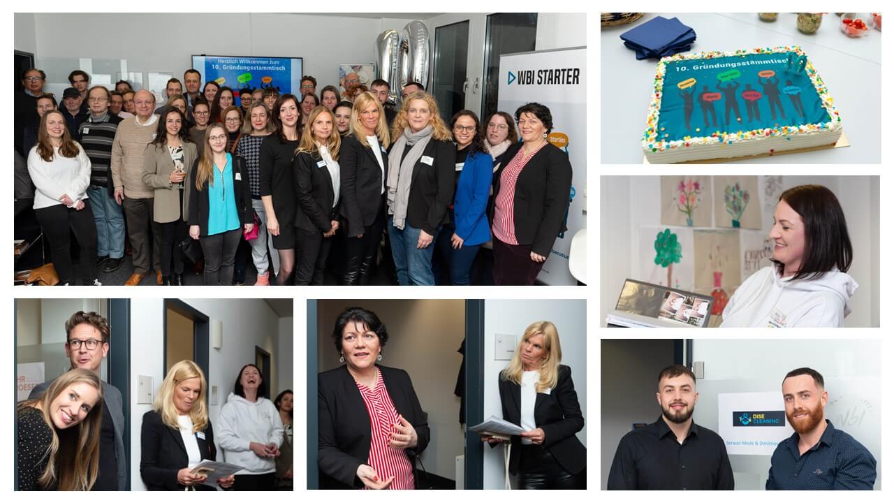 Im Weiterbildungsinstitut am Rheinlanddamm präsentierten WbI-Geschäftsstellenleiterin Meike Ströhmer und Andrea Schubert, Teamleiterin Gründen bei der Dortmunder Wirtschaftsförderung, auf einer eigens eingerichteten „Gründungsstraße“ vier junge Unternehmen. Nina Rüther stellte ihr Eventunternehmen „dein Kinderevent“ vor und berichtete vom Gründungsprozess. Maik Rehr und Charlotte Roeser erzählten vom erfolgreichen Aufbau ihrer Digital-Marketing-Agentur „Rehr & Roeser“. Dimitrios Meier und Serwan Mede stellten ihr jüngstes Unternehmen „DISE Cleaning“ vor, das zuverlässige Reinigungslösungen für zu Hause und für Unternehmen in der gesamten Region anbietet. Die erfahrene Software-Entwicklerin Mariya Rajendran zielt mit ihrer GmbH „AI2Connect“, die sich noch in der Planungsphase befindet, darauf ab, KI-Anbieter und KI-Anwender intelligent zusammenzubringen. Ein roter Faden bei der Vorstellung der vier Jungunternehmen war deren Entscheidungsfindung bezüglich der Wahl der Gründungsform. Für die Stammtischgäste gab es einige praxisnahe Tipps, die helfen, die Entscheidung für den passenden eigenen Weg zu erleichtern.
