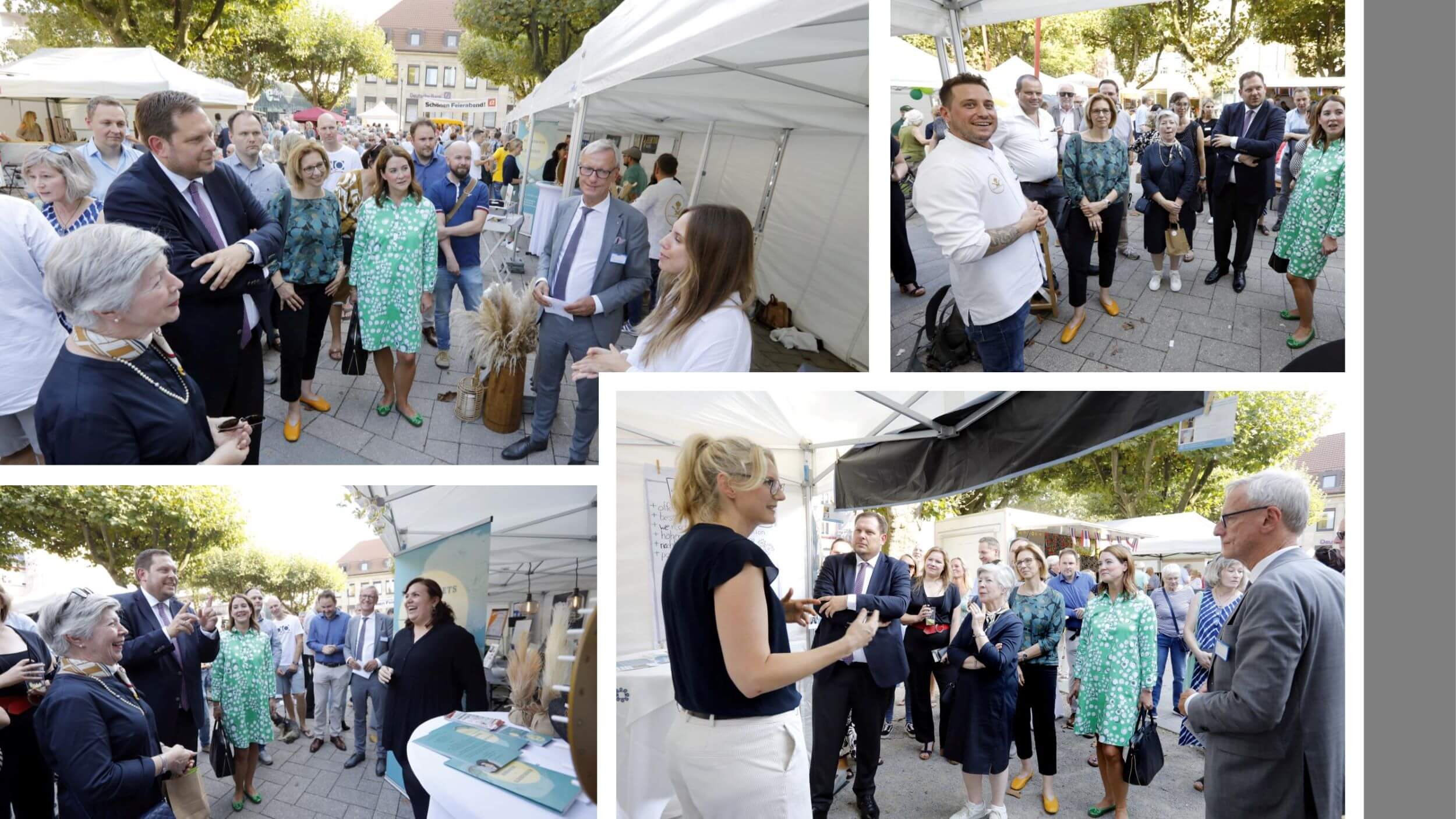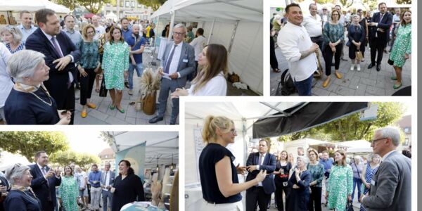 „Schon jetzt an später denken“, der Tipp am Messestand von Bestattungen Berger hätte auch das Thema des gesamten Rundgangs der Veranstalter gemeinsam mit Oberbürgermeister Daniel Schranz und IHK-Präsidentin Jutta Kruft-Lohrengel sein können. Ein Schwerpunkt der Messe war das leibliche Wohl mit Eventservice ESSENtial, Obst-Lieferdienst Stasfruit sowie Miet- und Eventkoch Kitchenking. Kommunikation und visuelle Darstellung mit Coaching-, Mediations- und Beratungsangeboten von „VB Verhandlungsbasis“ und „ChancenRaum“ sowie der „Ruhrgebiets Rednerin“, Fotografie „La Click“ und der Digital- und Kommunikationsagentur „Code & Clicks“ bildeten einen weiteren Themenkomplex. Das handwerkliche Unterstützungsangebot für Haus und Gewerbe präsentierte die Elektro Reeck GmbH. Am Schluss der informativen Runde stellte „Art Omidvar“ Natururnen aus patentiertem Biowerkstoff vor. Elf Newcomer aus Oberhausen und den Nachbarstädten, maximal seit fünf Jahren am Markt, nutzten mit pfiffigen Präsentationsideen die Gründermesse, um ihre jungen Unternehmen, Produkte und Dienstleistungsangebote vorzustellen und mit den zahlreichen Besuchern auf dem Saporishja-Platz ins Gespräch zu kommen.