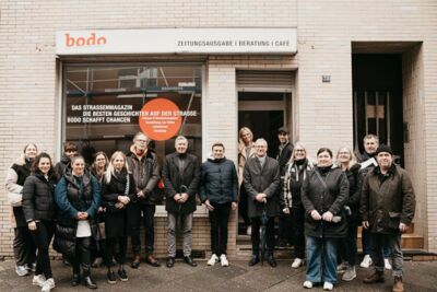 Ihr jüngstes Coachtreffen haben sie in die Nordstadt verlegt und sich dort auf der Straße von Dennis die besten Geschichten unmittelbar aus erster Hand erzählen lassen. Dennis (Foto Mitte mit Kappe) ist Experte. Er und sein Kollege Franz wissen, wie es ist, keine Wohnung mehr zu haben und auf der Straße (über-)leben zu müssen. Aber sie kennen auch den Weg zurück in die eigenen vier Wände. Dennis hat das Straßenmagazin verkauft und ist jetzt festangestellter Stadtführer bei bodo.