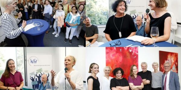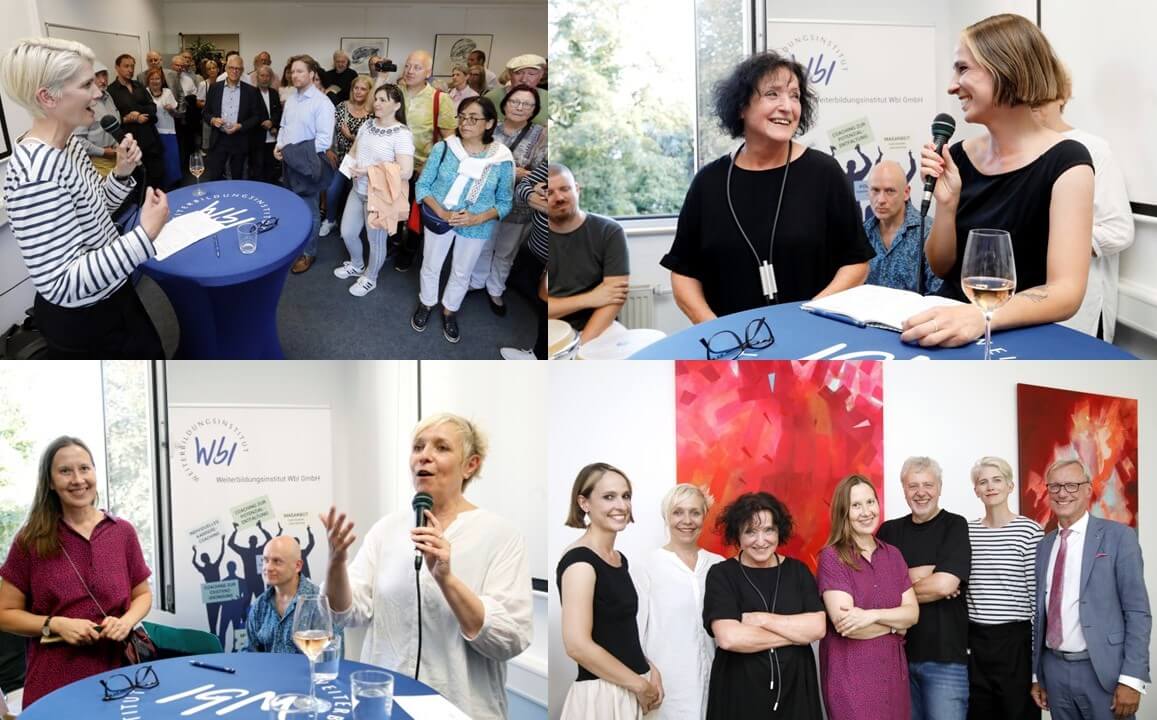 Mehr als 150 Gäste waren am 27. August der Einladung zur Vernissage der Gemeinschaftsausstellung der Preisträger des Kunstwettbewerbs Oberhausen City Arts in den WbI-Räumen im Forum am Altmarkt gefolgt. Dr. Christine Vogt, Vorsitzende, und Dr. Sarah Hülsewig, Mitglied der Jury, stellten die Werke der Preisträger Agnieszka Smuda, Klaus Wiesel, beide aus Oberhausen, und Helga Budde-Engelke, Essen, mit Blick auf die unterschiedlichen Techniken und ihre speziellen Aussagen und Wirkungen vor. Für den musikalischen Background der gelungenen Veranstaltung sorgten Matthias Dymke (Piano) und Markus Ostfeld (Percussion). WbI-Geschäftsführer Peter M. Urselmann dankte der Stadtsparkasse Oberhausen, dem Künstlerförderverein Oberhausen und Jacques‘ Wein-Depot für die Unterstützung und dem Restaurant La Maddalena für die köstliche Bewirtung.
