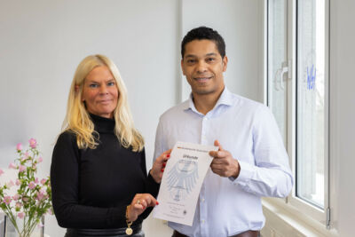 Nun überreichte Rechts- und Fachanwalt Steffen Majoyeogbe, Spezialist für Wettbewerbsrecht, Markenrecht und IT-Recht, WbI-Geschäftsstellenleiterin Meike Ströhmer in Dortmund die Urkunde, die am 16.01.2024 von der Präsidentin des Deutschen Patent- und Markenamtes unterzeichnet worden ist. „Seit 2005 begleiten wir Existenzgründungen und Jungunternehmen auf dem Weg in die Selbstständigkeit und seit 12 Jahren erfolgt unser Coaching über Aktivierungs- und Vermittlungsgutscheine (AVGS). Da war es an der Zeit, sich WBI STARTER auch als Marke in das Register des Deutschen Patent- und Markenamtes eintragen zu lassen“, so Juristin Meike Ströhmer.